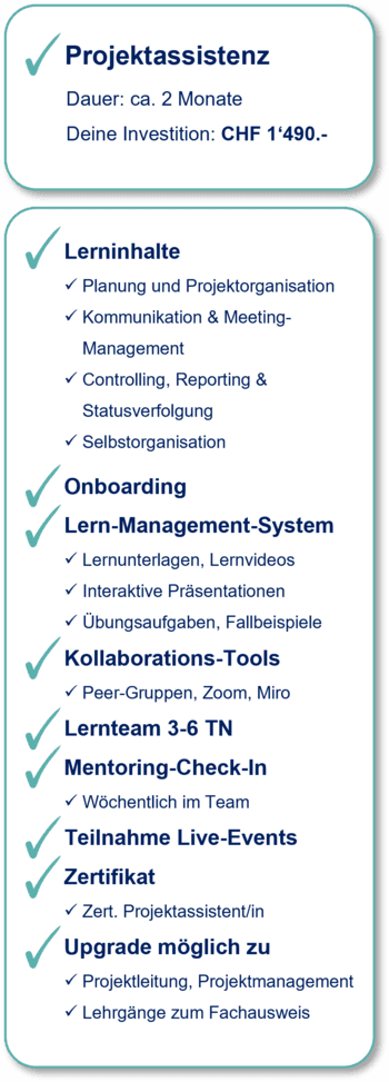 - Abschluss Kurs Projektassistenz bei Upgrade